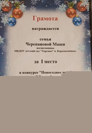 диплом награждается Слонова Алиса за участие в турнире по русским шашкам "Юный шашист" среди воспитанникоа МКДОУ д.с."Теремок" п.Керамкомбинат