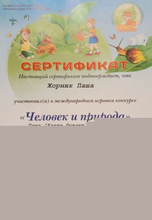 сертификат настоящий сертификат подтверждает, что Круглов Слава участвовал в международном игровом конкурсе "Человек и природа"