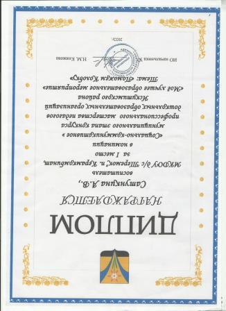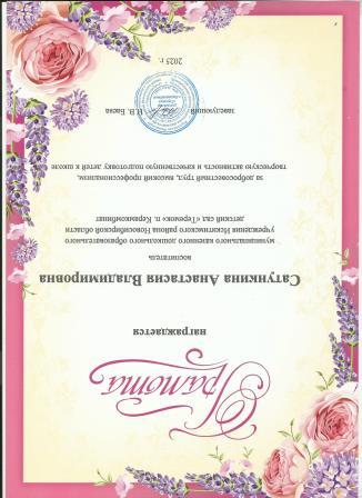 Грамота за добросовестный труд, высокий профессионализм, творческую активность и качественную подготовку детей к школе
