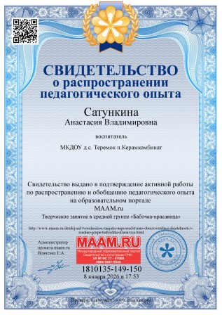 Свидетельство о распространении педагогического опыта