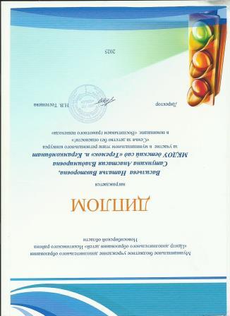 Грамота за 2 место в соревнованиях по настольному теннису Спартакиады коллективов образовательных учреждений Искитимского района