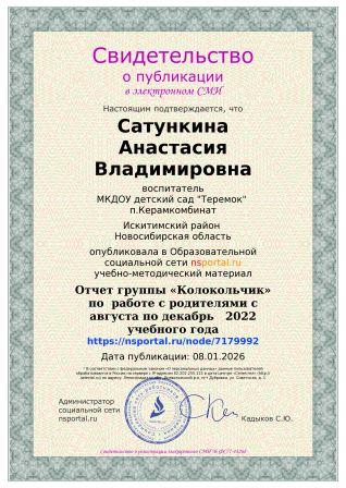 Свидетельство о публикации в электронном СМИ