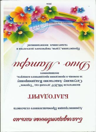 Благодарность за помощь в проведении праздничного концерта, посвященного Дню Матери