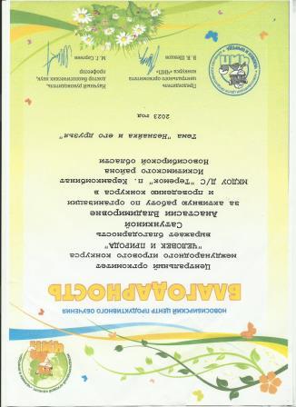 Грамота муниципального казенного дошкольного образовательного учреждения Искитимского района Новосибирской области детский сад "Теремок" п.Керамкомбинат за активное участие в жизнедеятельности детей дошкольного возраста