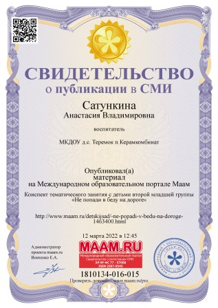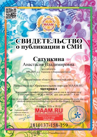 Свидетельство о публикации в СМИ